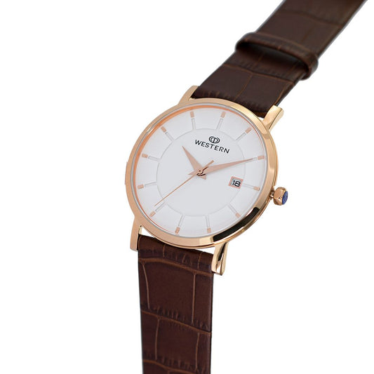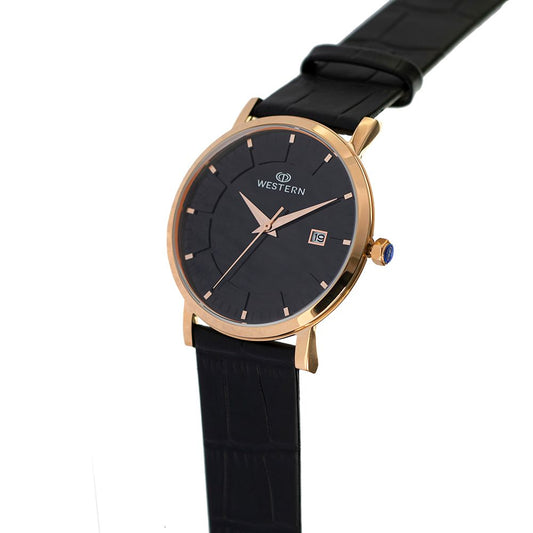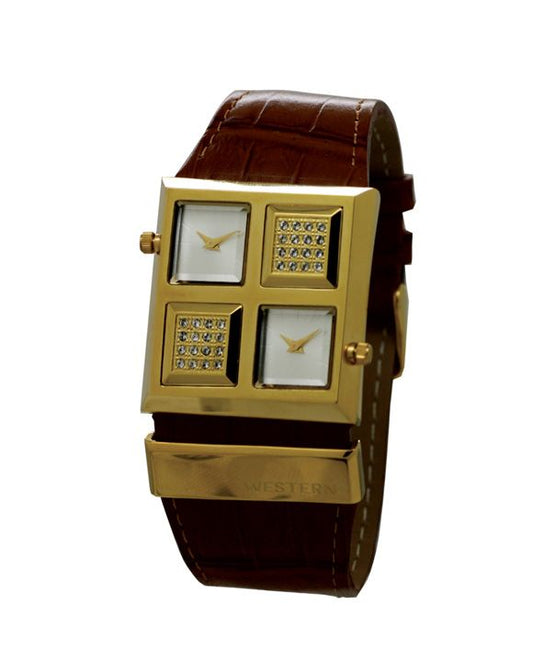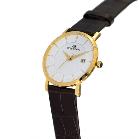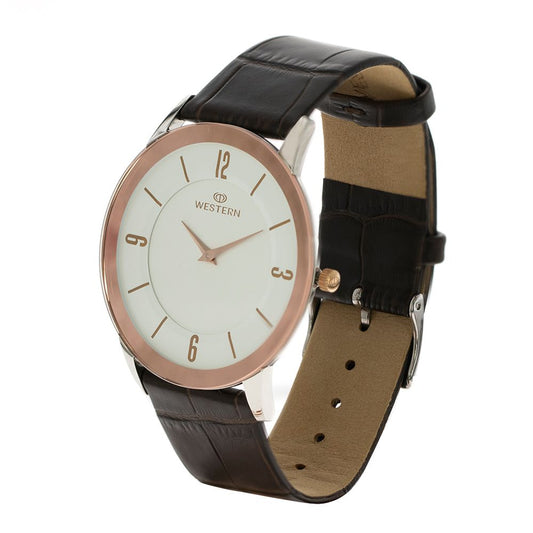 Men's Quartz Analogue Dual Time Leather Strap Watch