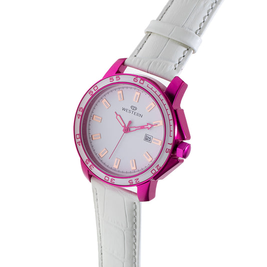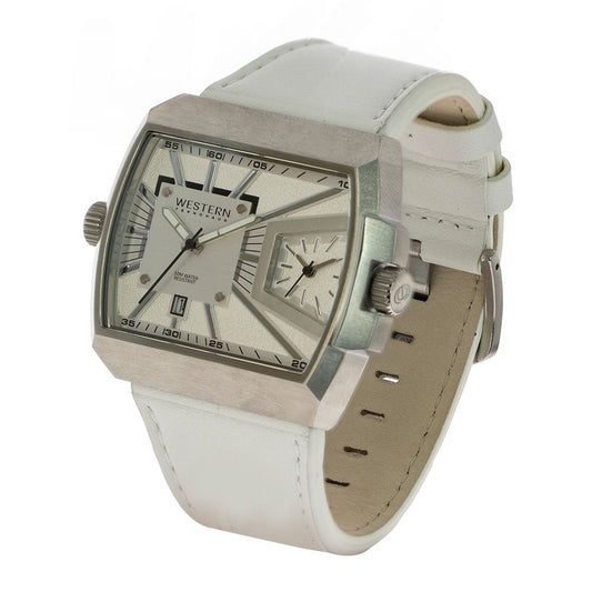 Men's Dual Time Leather Strap Watch, white dial with White Strap